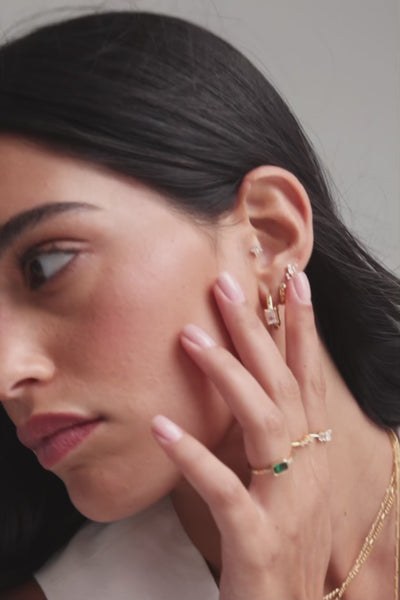עגילי חישוק קולט הם גרסה מחודשת לחישוק הקלאסי – קטנים, מדויקים, עם גימור מצולע שמוסיף להם אופי וטקסטורה בלי לקחת צעד אחורה מהעדינות.