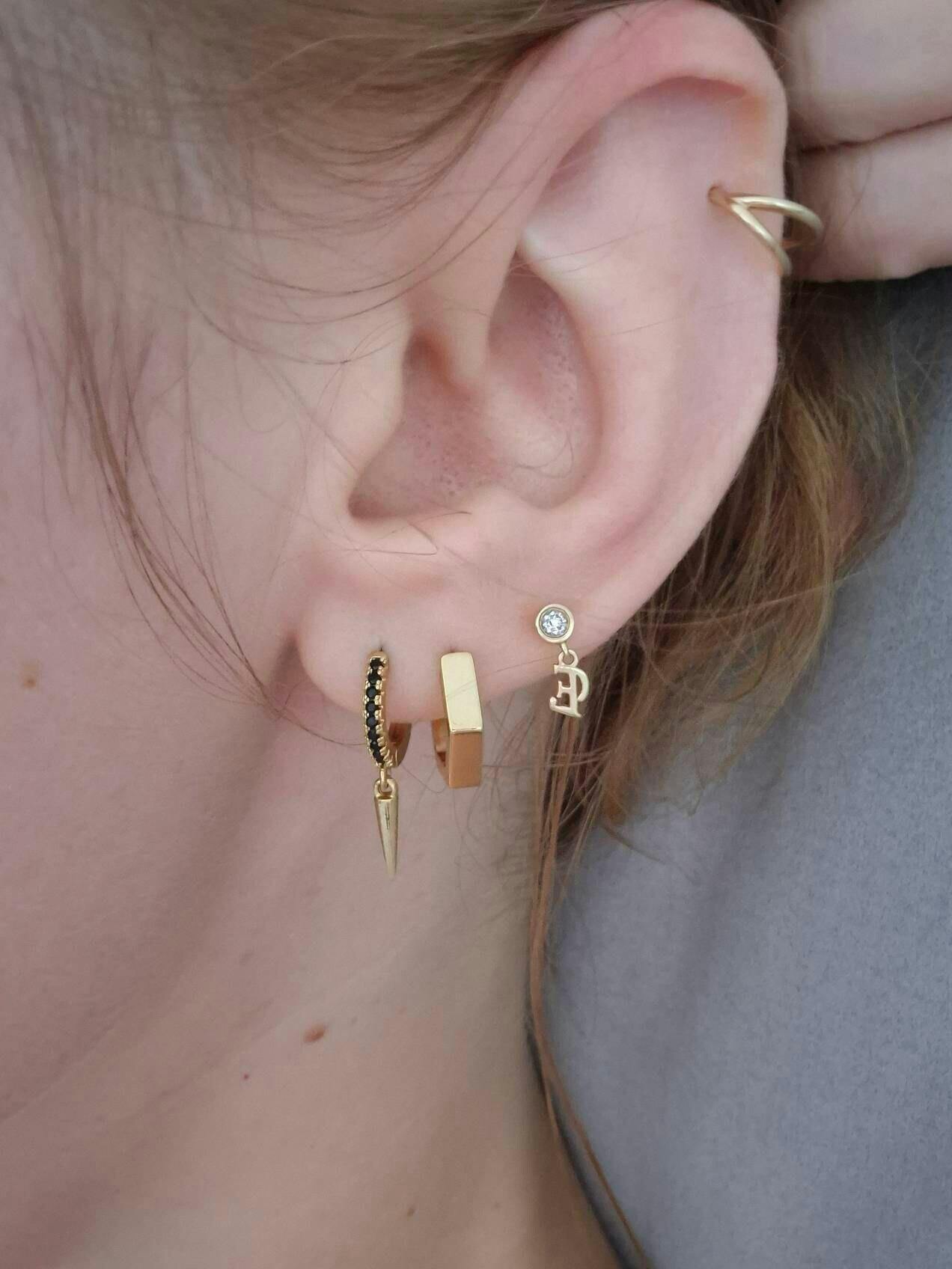 עגילי לורנס - עגילי חישוק משובצים בזירקונים שחורים או לבנים עם תליון ספייק.