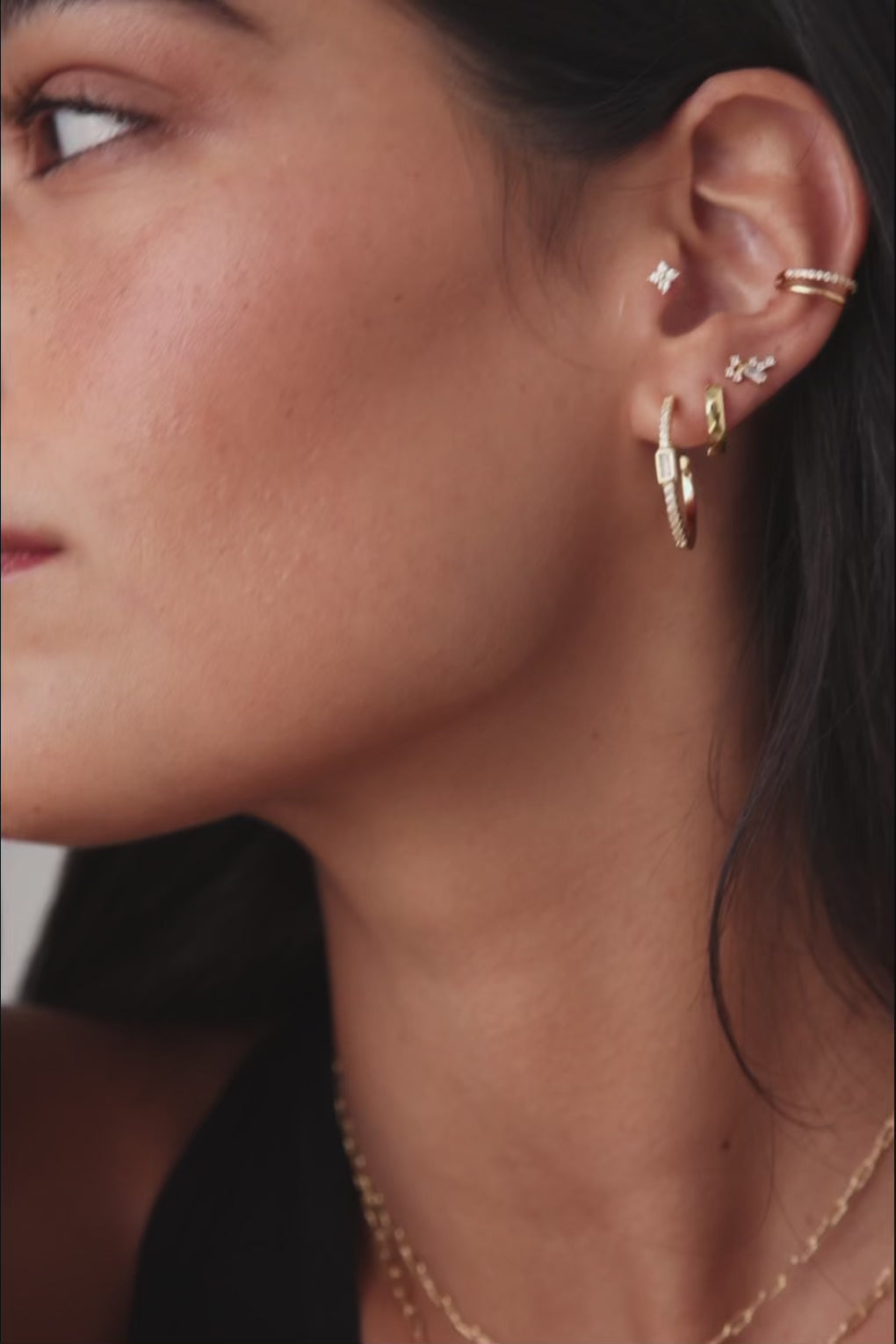 עגילי חישוק ליביה - חישוקים גדולים משובצים בשורת זירקונים, עם אלמנט מלבני משובץ במרכז.